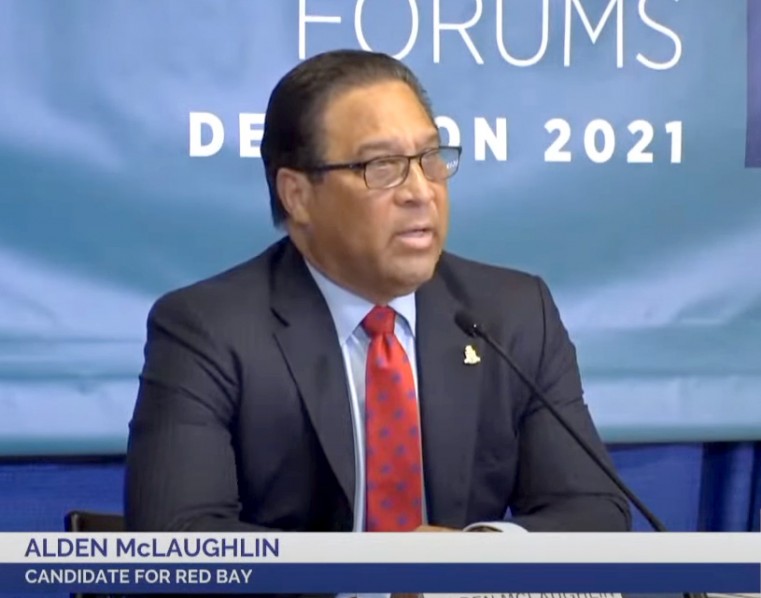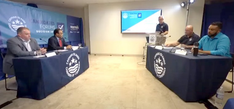 Outgoing Premier Alden McLaughlin who is defending his Red Bay seat and his government’s track record, traded policy ideas with his constituency challenger Sammy Jackson when they met in the Chamber of Commerce’s Candidates Forum on Monday evening.