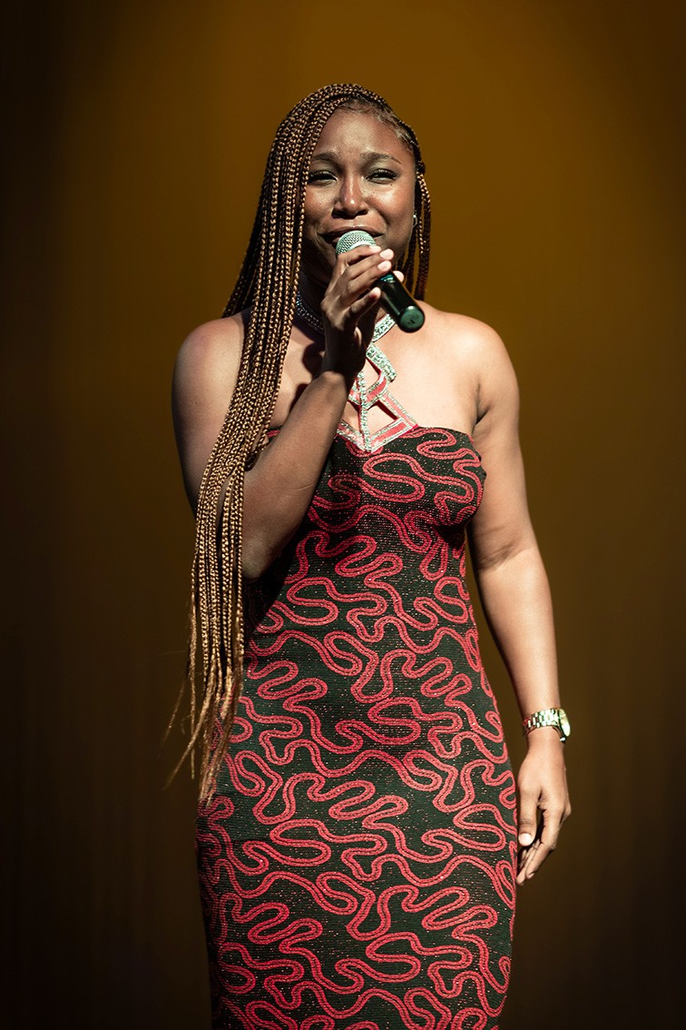 Starting out the night, The John Gray Elite Strings,  with their perfect pitch, captivated the crowd with  precise arrangements and strings in unison followed by Dequan Smith and Christa Bevilacqua taking center stage with a stirring composition on the piano and violin. The night shifted seamlessly through genres and moods with the little ones bringing in the dance followed by a soulful arrangement of Alicia Keys, If I ain’t got you, by Moniesa Farquaharson that had the crowd swaying.  Moonlighting host of the evening, Lloyd Barker traded his hosting hat for a performance hat and, and ever the selecta, surprised the audience with a brilliant medley of our favorite reggae old skool tunes.  Not to be outdone, Radiance Dance and their sparkling red sequins lit up the stage, their movements echoing the music’s pulse followed by a magical solo performance of the Wizard and I, by Abby Jervis, whose voice control and talent was such a joy to witness. The heartfelt ballad rendition of the song Please Stay, by Leah GC, who also debuted her new song at the end of the evening with the catchy single When, was one of many standout moments, and Jaide dixon singing You make me feel like a natural woman.