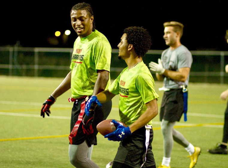 Just over on field two, it was the Magnum chargers to take on Burger King. Magnum QBs Tonia Mclaughlin and Michael Gocul Jr led their team to victory that night. Michael threw a touchdown to Theo Edman and secured the extra two-point conversion. Another pass from QB Michael found Josh Whittaker for their second touchdown and extra point conversion. The game was beginning to look very one sided as Burger King struggled to get the ball moving as Magnum defenders gave Burger King no breathing space intercepting BK pass attempt. Magnum’s ball and it seems that Burger king was finally awake as they answered back with and interception of their own. Trick plays between Burger king QB’s Richard Campbell and Justin Derrick brings their team closer to the end zone and in scoring position. Richard capitalizes on the opportunity and throws a touchdown to Marlene Williams. Richard Campbell fought hard to keep his team in the game as another touchdown was secured by Burger King; despite the team effort, it was the mighty Magnum chargers who dominated this night and took home the win. Final score Magnum (36) vs Burger King (12)