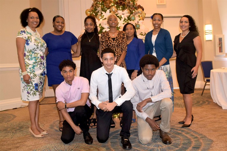 Some members of the graduating cohort 31 and 32 of Passport2Success along with course instructors Catherine Tyson (left) and Carmella Pugh (right). Left to right, standing: Jade Seymour, Sabrina Suberan, Claudina Morgan, Samaria McLaughlin, Abigail Turner; kneeling: Rickhams Zuniga, Andrew Suberan a